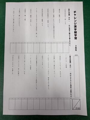 「教科の基礎となる学習活動を進めることで、基礎基本の定着を図る」 「学級の係活動や専門委員会の活動、家庭学習の充実を図る」 という2つのねらいでチャレンジ学習が始まりました。今週月曜日から 家庭学習 → 朝学習課題解答・採点 → 復習 サイクルを学年裁量で行っています。教室では、班ごとに教え合う学習をするなど工夫しています。