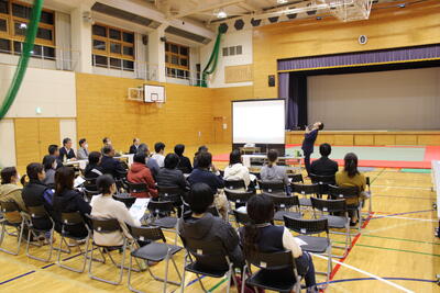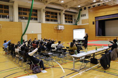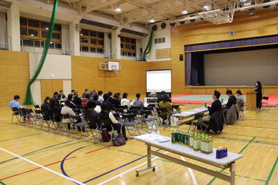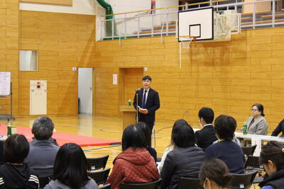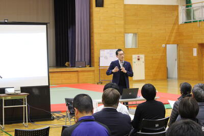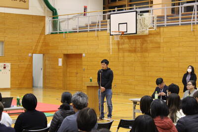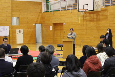乙部中学校PTA副会長より、講師の方のご紹介です。