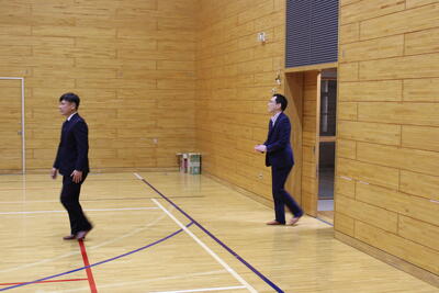 シャキッと目を覚ます体操をしました。意外と難しい・・・