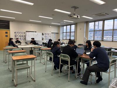 3年英語は、前半は公立高過去問(レベル別)に取り組み、後半は教科書の(かなりの)長文読解に挑戦していました。難しい単語が多数使われていました。どのクラスも集中し落ち着いて授業に向かい、光濤祭後から新しくしていただいた端末(Chromebook)で、自分の考えを広げたり、まとめたりして頑張っています。