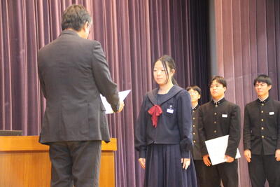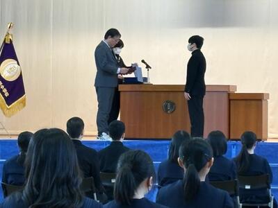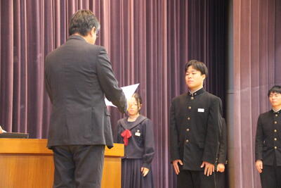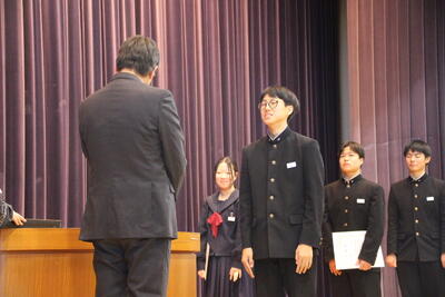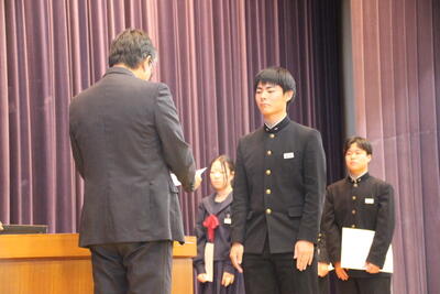 今年度最後の賞状伝達(サッカー部・税のポスター)でした。来年度の活躍も楽しみです。