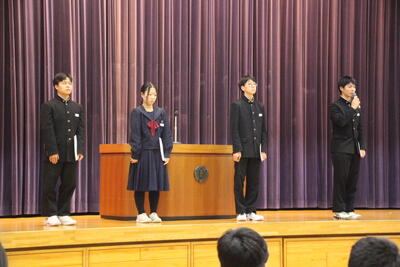 離任式では離任する6名の先生方からのあいさつと、生徒代表から心温まるお別れの言葉がありました。会うは別れの始めとも言いますが、いつか笑って再会できることを楽しみにしています。4月からの新しい出会いも楽しみですね。