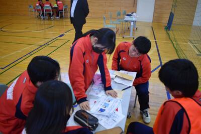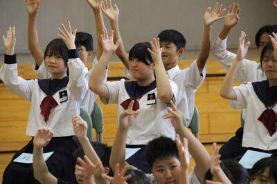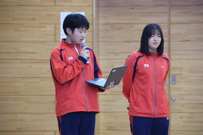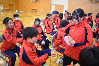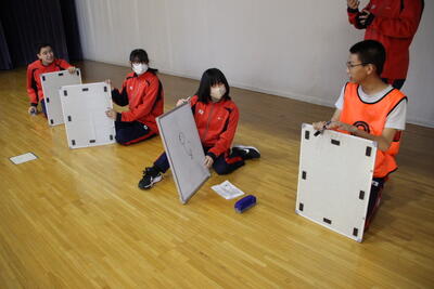 12月22日(月)6時間目、体育館にて全校レクレーションを行いました。本校のいじめ防止プログラムの一環でもあります。執行部が全校アンケートをとり内容を工夫しました。(スポーツを希望した人がいたので苦手な人も楽しめるようピンポイントで取り入れるなど)簡単に説明すると「①『謎解き』の問題が難易度別に校舎に配置されています(簡単な問題の方が遠い)→②問題を解いたら次の問題を持ってきます(問題を取りに行く人はリレー形式)→③ヒントをもらう場合はミニゲームをクリアする」です。
