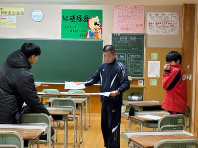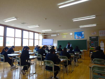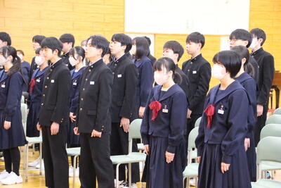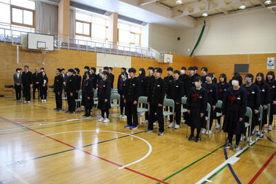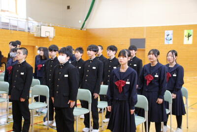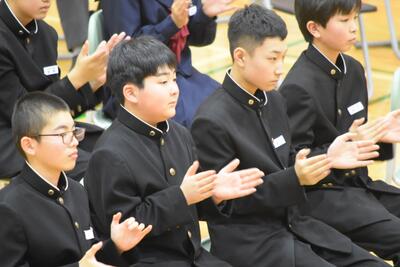 終了式では校長先生から「校歌」を大きな声で歌えることの素晴らしさについてのお話がありました。乙部中学校の良き伝統として、今後も引き継いでほしいです。