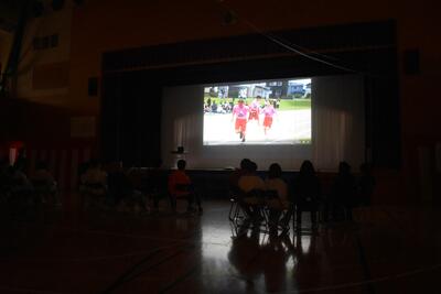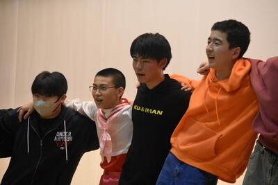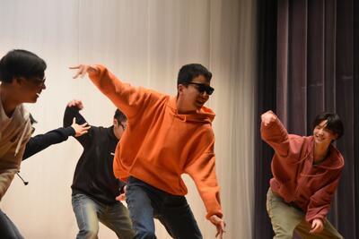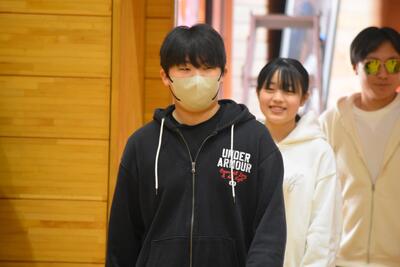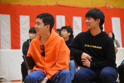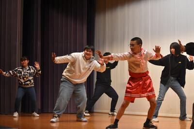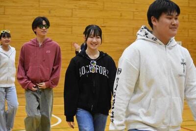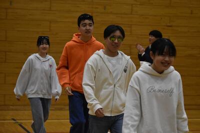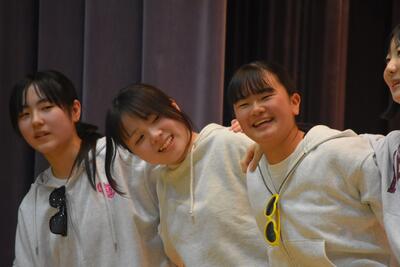 【「送る会」の前に、会場をあたためる2年生】
