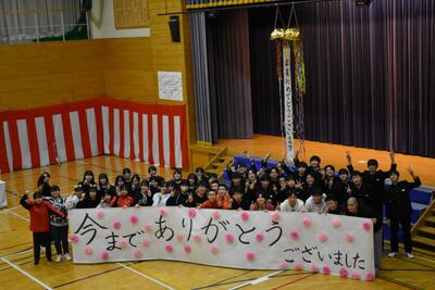 生徒のみなさん、保護者の皆様、地域の方々、町教委をはじめ関係機関の方々のおかげです。いつも励まされています。今年度のしめくくりも、『凡事徹底』のスローガンで教職員一同「ふるさとを愛し、活力に満ちた人間性豊かな町民を育む」姿勢で邁進してまいります。