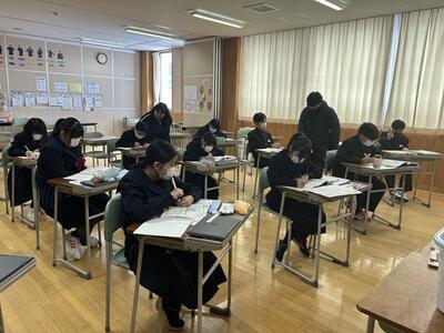 3年生の理科の授業では、チャレンジテストを行っていました。いつも行っているテストですが受験生の雰囲気を感じる緊張感がありました。