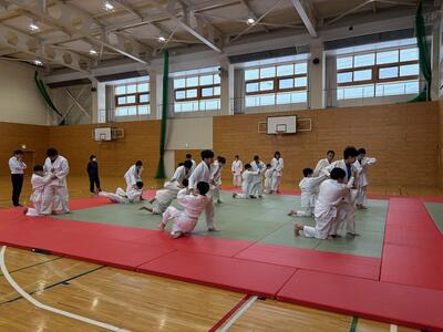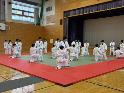 【投げたあとも、3年生から1年生に「受け身」 の取り方のアドバイス】
