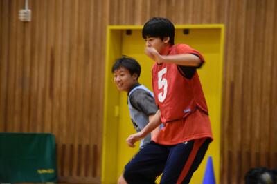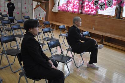 【「送る会」の前に、会場をあたためる2年生】