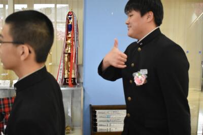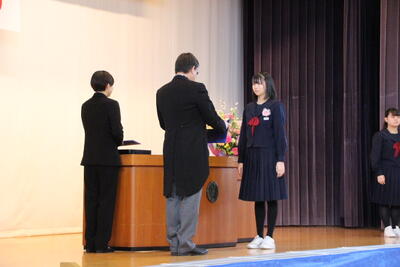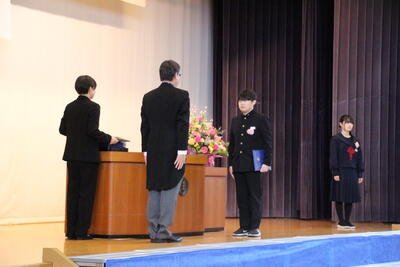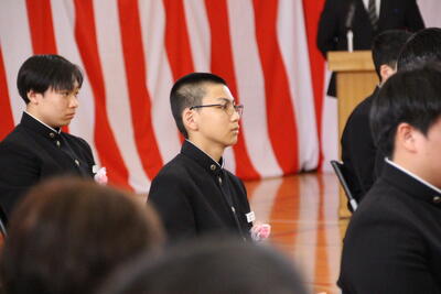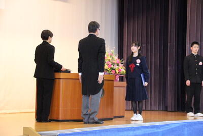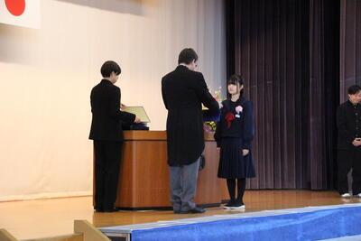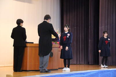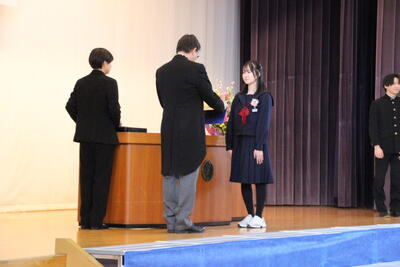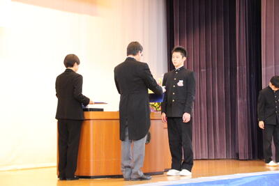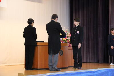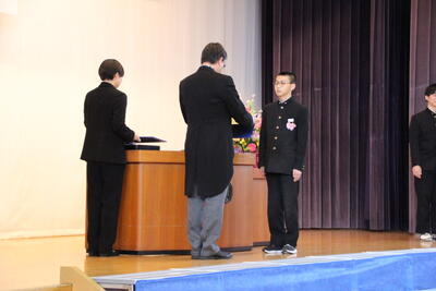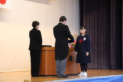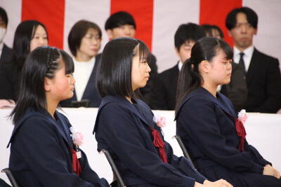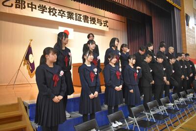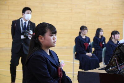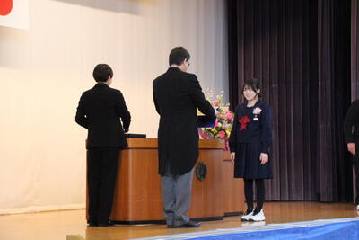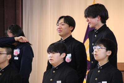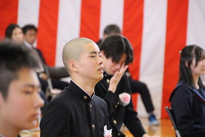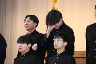 感極まって泣いている姿、校長先生と抱き合ったり握手したりする姿・・・それぞれ3年間を振り返りたくさんの想いが込み上げている様子でした。担任の呼名に対する返事が大変立派でした。