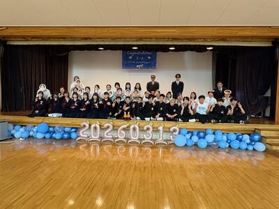 令和7年度卒業式の様子をお伝えするのも最後になりました。多くの感動を、かけがえのない思い出の1ページとします。「卒業生を祝う会」の集合写真もアップします。