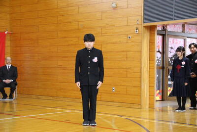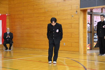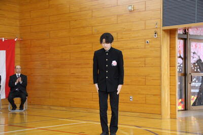 感極まって泣いている姿、校長先生と抱き合ったり握手したりする姿・・・それぞれ3年間を振り返りたくさんの想いが込み上げている様子でした。担任の呼名に対する返事が大変立派でした。