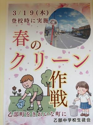 春のクリーン作戦 ブログ 03/19 パブリック ICT 少し雨が降っていましたが、ゴミ袋を片手に通学路でゴミを拾う姿が輝いていました。ポスターを作成してくれたので、次回(来年度)から地域に貼らせていただければと思います。