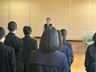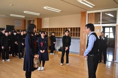校長先生へサプライズ ブログ 03/26 パブリック ICT 久しぶりに3年生が登校し、令和7年度の離任式を行いました。全て終わった後に、全校生徒が校長先生のために「旅立ちの日に」を歌う場面がありました。まるで家族のようなチーム感で今年度が終わりました。修了式・離任式の様子は明日アップします。