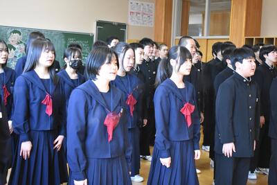令和7年度 修了式 ブログ 08:16 パブリック ICT 今年度のしめくくりとして、校歌を高らかに歌いました。伴奏は生徒が務めます。 担任が呼名し、全員が起立します。1年間よく頑張りました。 4月から学年が一つ上がります。進級おめでとうございます!