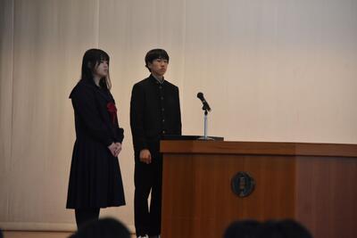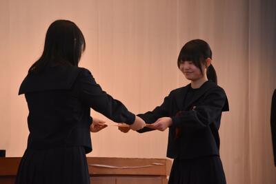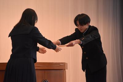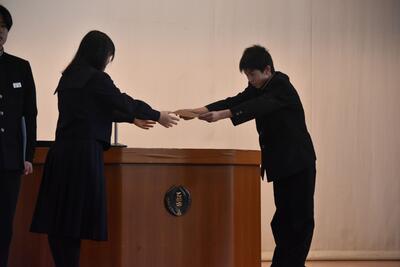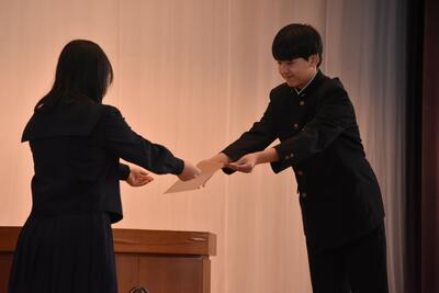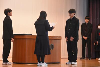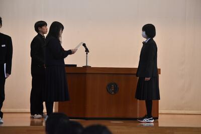 任命式 ブログ 04/24 パブリック ICT 生徒会長より、前期専門委員長と学級委員長に任命証が渡されました。 【式を運営する執行部員】 【生徒会長と生徒会副会長】 【生活専門委員長】 【学習専門委員長】 【保体専門委員長】 【3年学級委員長】 【2年学級委員長】 【1年学級委員長】 活躍を期待しています!